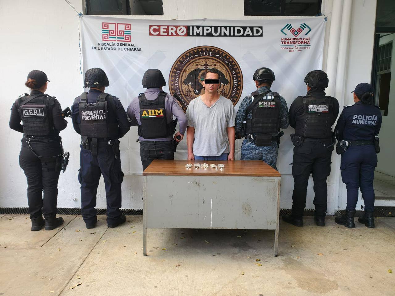 Como resultado del trabajo interinstitucional que fortalece la paz y la seguridad en Tapachula, personal de la SSPPC-Tapachula, en coordinación con AIIM, GEF, FRIP y GEP, logró el aseguramiento de una persona del sexo masculino por su probable responsabilidad en el delito contra la salud, en su modalidad de posesión simple.