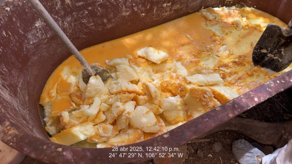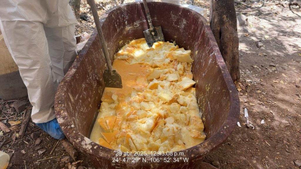 Cabe destacar que en el citado laboratorio se aseguraron aproximadamente 250 kilogramos de metanfetamina en proceso de secado, 650 litros de precursores químicos, así como 2,425 kilogramos de precursores sólidos y diversas herramientas de trabajo, entre ellas cilindros de gas LP, bidones, quemadores, tinas vacías y material diverso.