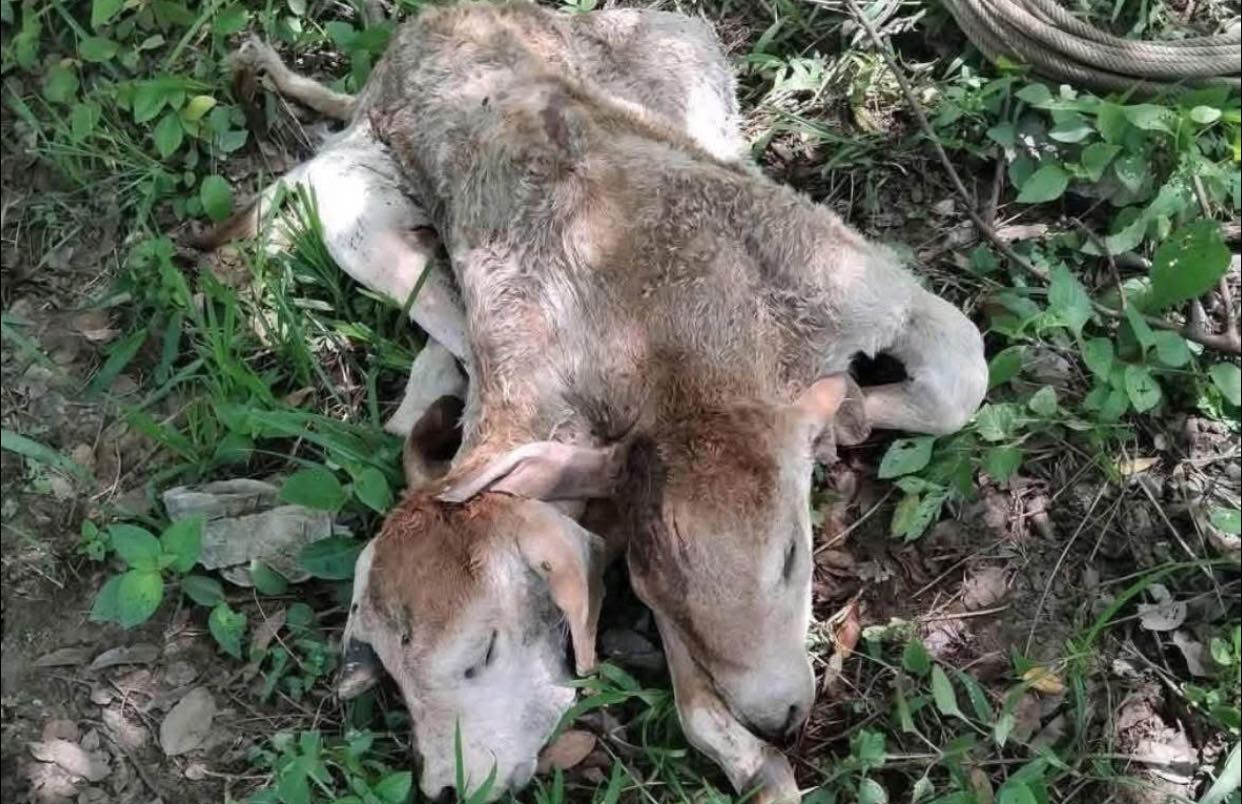Nace becerro con dos cabezas en Huitiupán, Chiapas.