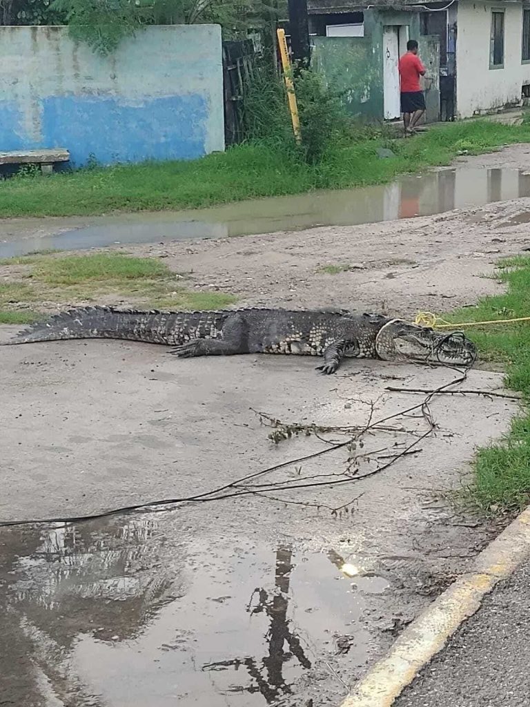 Tras el paso de la tormenta tropical “Barry”, los ríos Pánuco y Tamesí se desbordaron, provocando una serie de avistamientos de cocodrilos en distintos puntos de la zona conurbada de Tampico, Madero y Altamira.