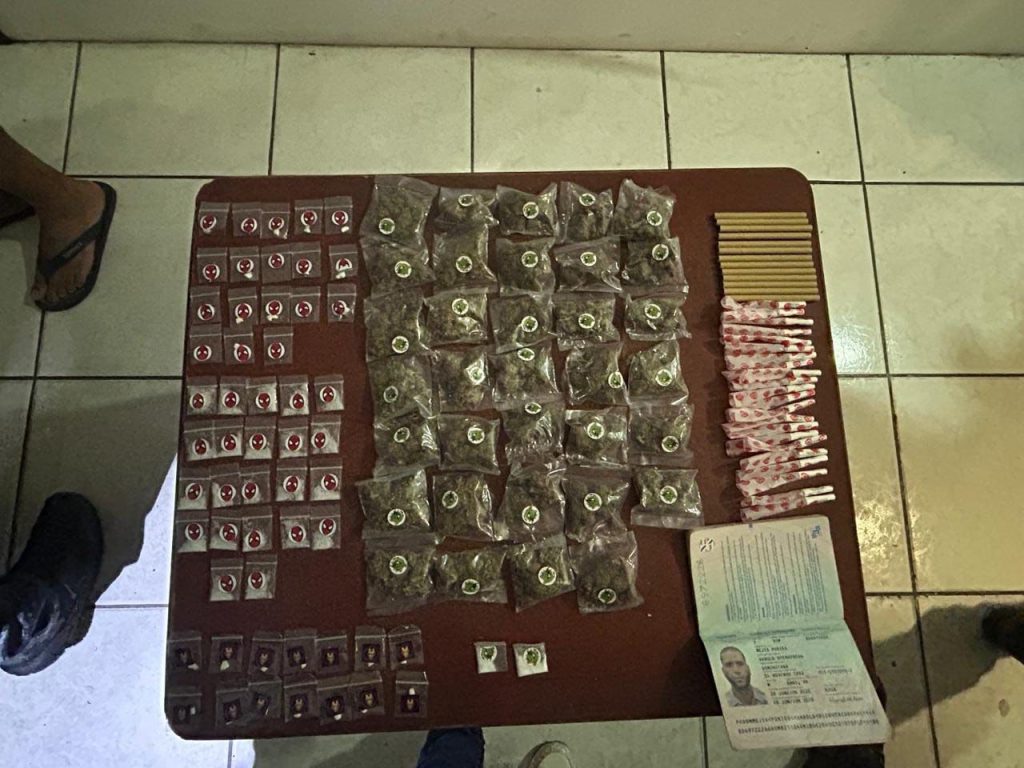 La diligencia se ejecutó en un domicilio de la colonia INDECO, deteniendo a Harold “N”, originario de República Dominicana, asegurándole 34 bolsitas con marihuana, 32 bolsitas con crack, 22 bolsitas con cristal, 02 bolsitas con cocaína, 13 tubos de cartón para embolsar cocaína, 22 envolturas de papel arroz y un pasaporte de República Dominicana.
