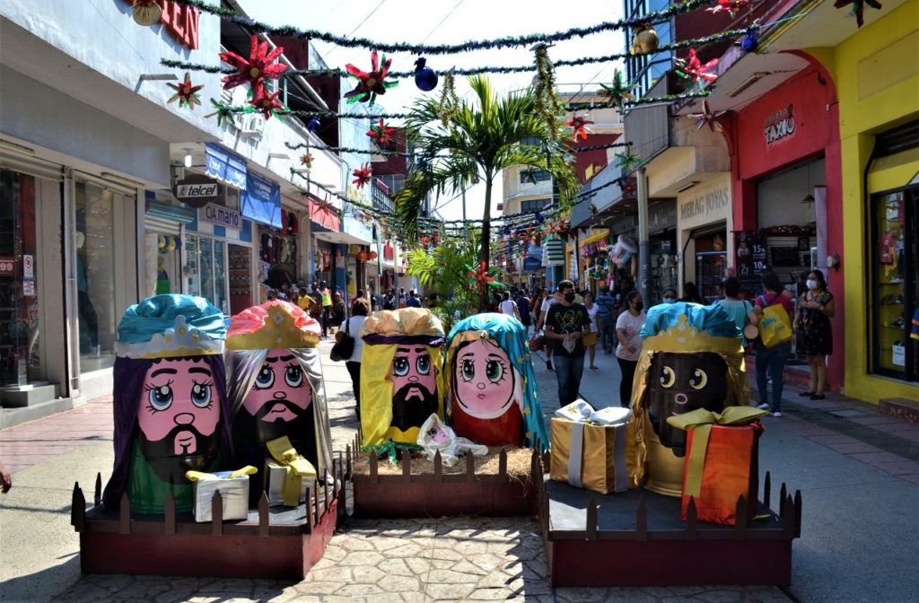 El tradicional nacimiento, guirnaldas y flores de nochebuena son los elementos que se utilizaron para adornar los sitios donde diariamente los tapachultecos y visitantes nacionales y extranjeros realizan sus actividades comerciales y de esparcimiento.