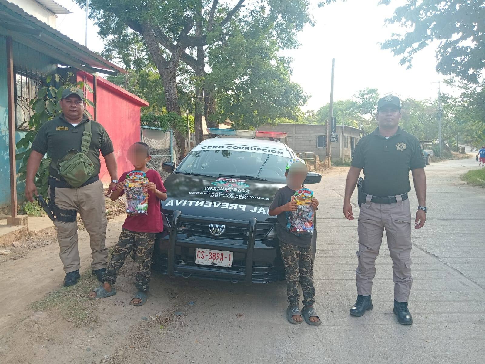 A través de la Policía Vial Preventiva y de Turismo, la SSP repartió regalos y dulces para los infantes de comunidades marginadas de Chiapas, lo cual emocionó a los menores de Pijijiapan, Ángel Albino Corzo, Teopisca y Motozintla.