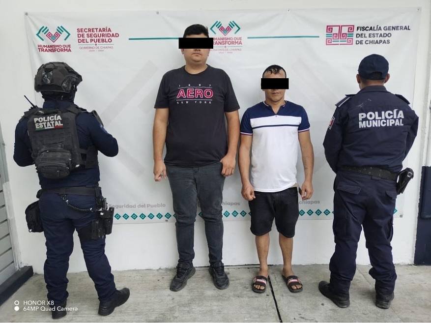 Por el probable delito de resistencia de particulares, elementos de la Secretaría de Seguridad del Pueblo (SSP) a través de la Policía Estatal Preventiva (PEP) y la Fuerza de Reacción Inmediata Pakal (FRIP) en coordinación con la Fiscalía General del Estado (FGE) y la Secretaría de Seguridad y Protección Ciudadana (SSPC) del Gobierno Federal, detuvieron a dos personas en el municipio de Tapachula.