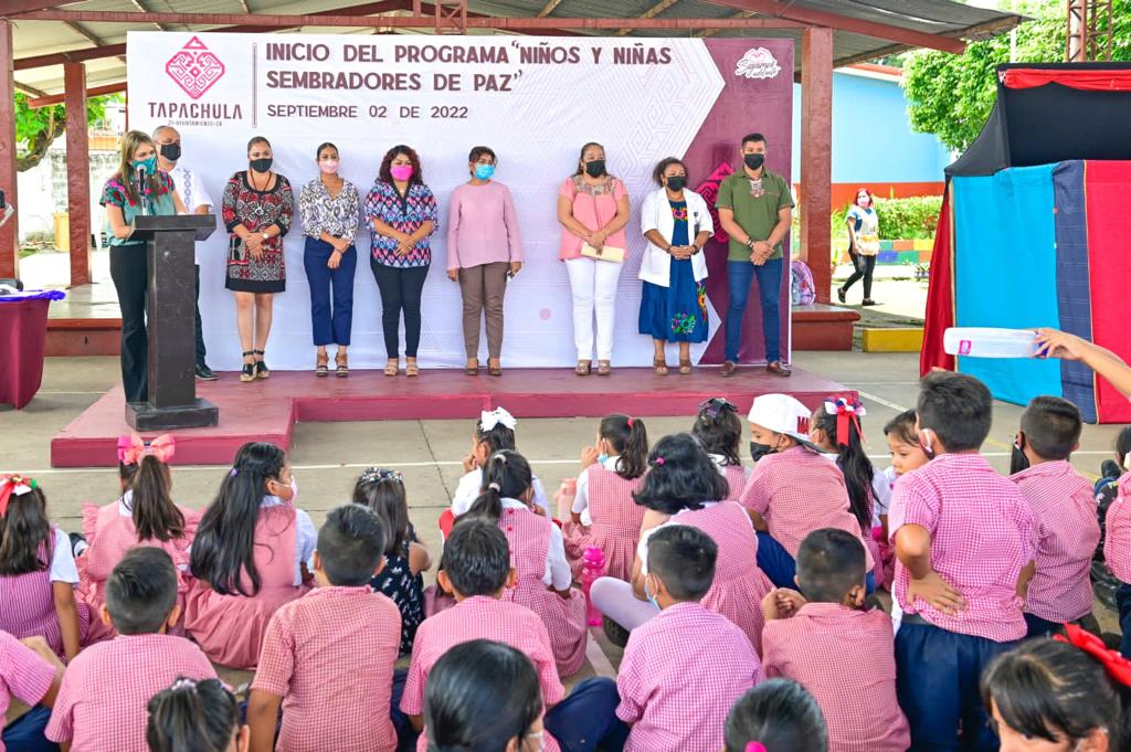 La presidenta municipal, Rosa Irene Urbina Castañeda puso en marcha el programa municipal “Niños y Niñas Sembradores de Paz”, que tiene por objetivo incidir en la población infantil que tiene el derecho de ser formado en espacios educativos con amor, con respeto, reconocimiento, equidad e igualdad para que junto con los padres de familia, maestros, autoridades, organismos e instituciones se construya una niñez sólida y feliz