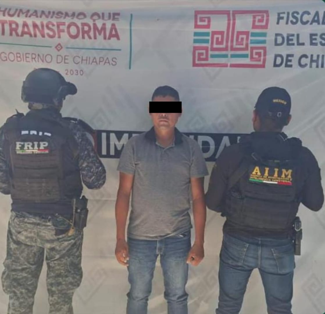 La Fiscalía General del Estado y la Secretaría de Seguridad del Pueblo ejecutaron mandamiento judicial en contra de Omar “N”, como presunto responsable del delito de extorsión, cometido en agravio de dos mujeres de identidad reservada, originarias de Venezuela, por hechos ocurridos en el municipio de Huehuetán.