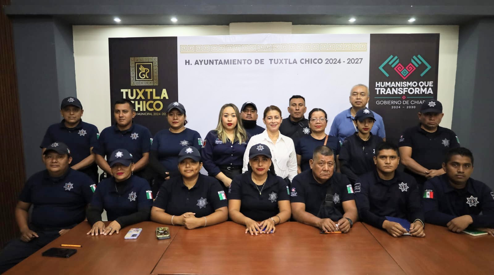 El Gobierno Municipal de Tuxtla Chico mantiene su compromiso con la capacitación y profesionalización de quienes integran la Secretaría de Seguridad Pública Municipal, el presidente municipal, Julio Enrique Gamboa Altúzar reitera la colaboración que se ha dado con los tres niveles de gobierno por el bienestar de las familias tuxtlachiquenses.