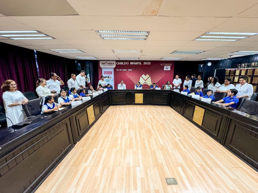 Tapachula, Chiapas.- Como parte de un ejercicio democrático para escuchar la voz de la niñez tapachulteca, el Ayuntamiento que preside el alcalde, Yamil Melgar Bravo, realizó la instalación del Cabildo Infantil 2025, con lo que se fortalece la cultura cívica, democrática y participativa.
