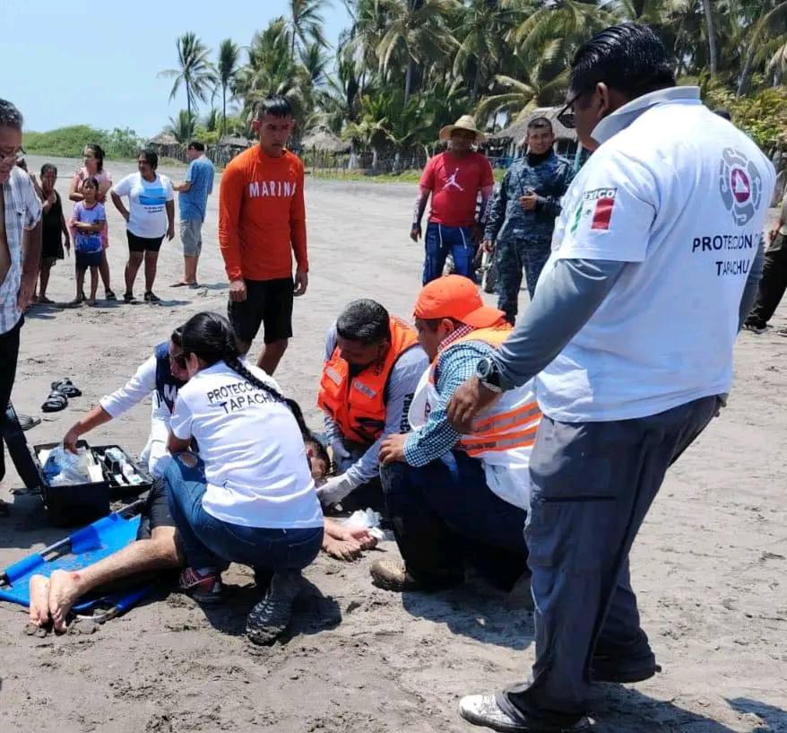 En coordinación interinstitucional entre SEMAR, Protección Civil del Estado de Chiapas, Secretaría de Seguridad del Pueblo y la Secretaría de Protección Civil Tapachula, se realiza el rescate de dos menores de edad que se encontraban en riesgo de ahogamiento en Playa de San Benito, Puerto Madero, Tapachula.
