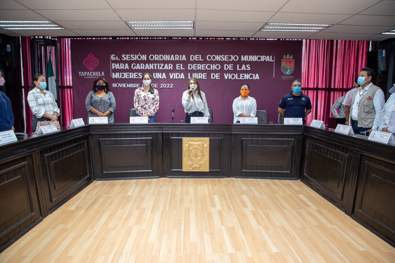 En el marco de la Sexta Sesión Ordinaria del Consejo Municipal para Garantizar el derecho a las Mujeres a una Vida Libre de Violencia 2021-2024, la alcaldesa Rosa Irene Urbina Castañeda, llamó a crear conciencia sobre esa problemática y advirtió que “en Tapachula las mujeres no están solas; vamos a seguir trabajando entre todos en contra de quienes las violenten”.
