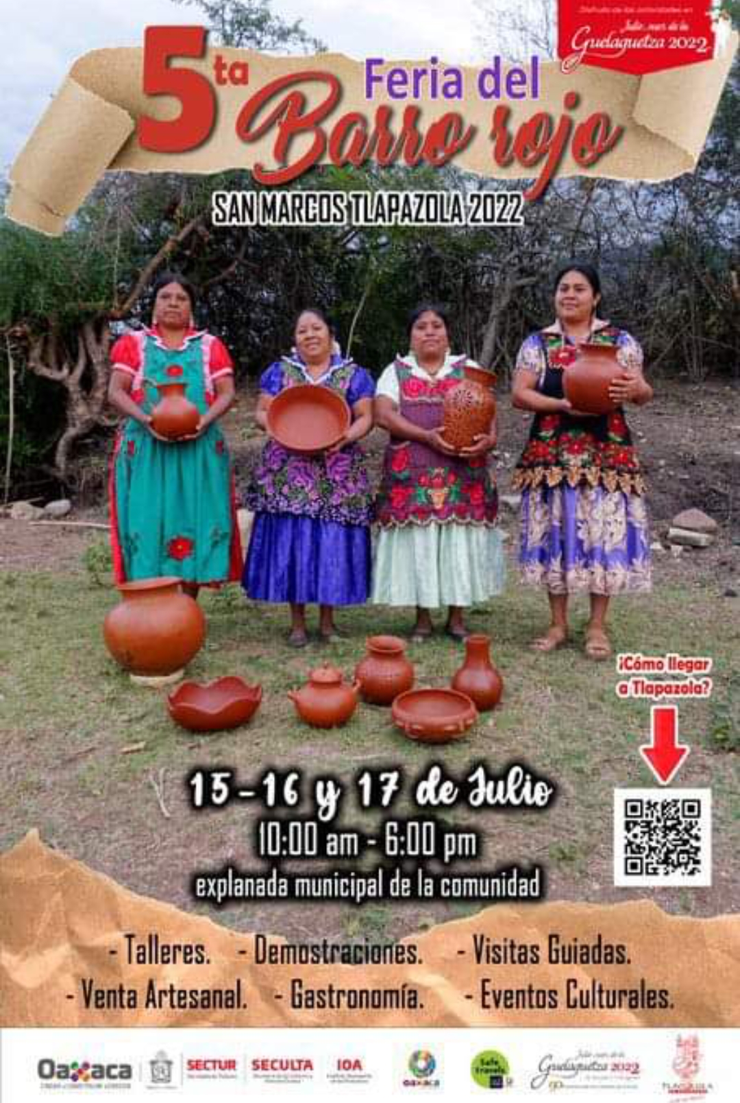 Julio es un mes muy sabroso en Oaxaca, pues es tiempo de la Guelaguetza y de eventos gastronómicos como la Feria Internacional del Mezcal, el Festival de los Moles, la Feria del tejate y el tamal y la tradicional Feria del Barro Rojo 2022, la cual celebra su quinta edición en el municipio de San Marcos Tlapazola.