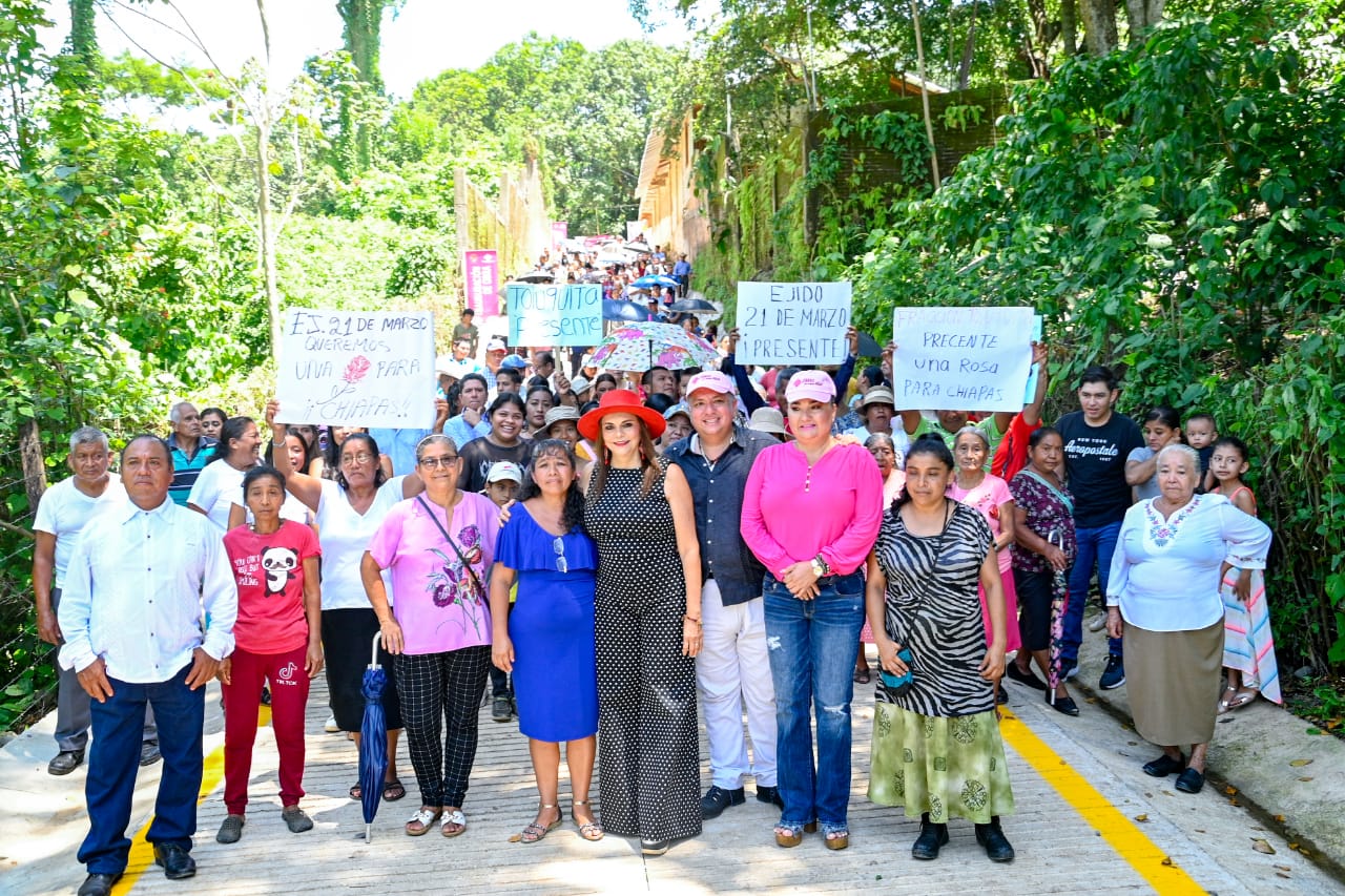 Al inaugurar la obra de pavimentación hidráulica en Las Conchitas, la presidenta municipal de Tapachula, Rosa Irene Urbina Castañeda, hizo un llamado a los ciudadanos a confiar en los gobiernos de la Cuarta Transformación porque le cumplen a la gente con obras que cambian vidas.