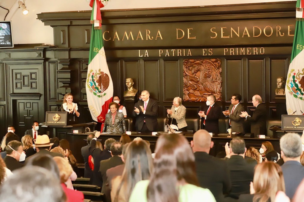 El gobernador Rutilio Escandón Cadenas asistió a la entrega de la Medalla de Honor Belisario Domínguez 2021, máxima distinción que otorga el Senado de la República a mexicanas y mexicanos que se han distinguido por su ciencia o su virtud en grado eminente, como servidores de la patria o de la humanidad, a la senadora decana Ifigenia Martínez Hernández, así como en modalidad post mortem al doctor Manuel Velasco-Suárez.