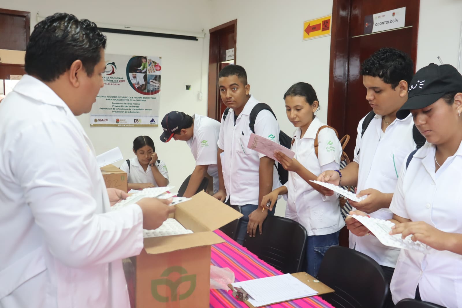 A nombre del alcalde Julio Gamboa, el médico agradeció a los alumnos del Colegio Nacional de Educación Profesional Técnica (Conalep) su apoyo para llevar a cabo estas tareas casa por casa en los diferentes barrios de la cabecera municipal.