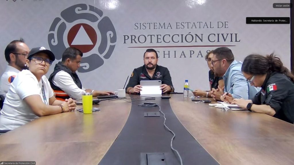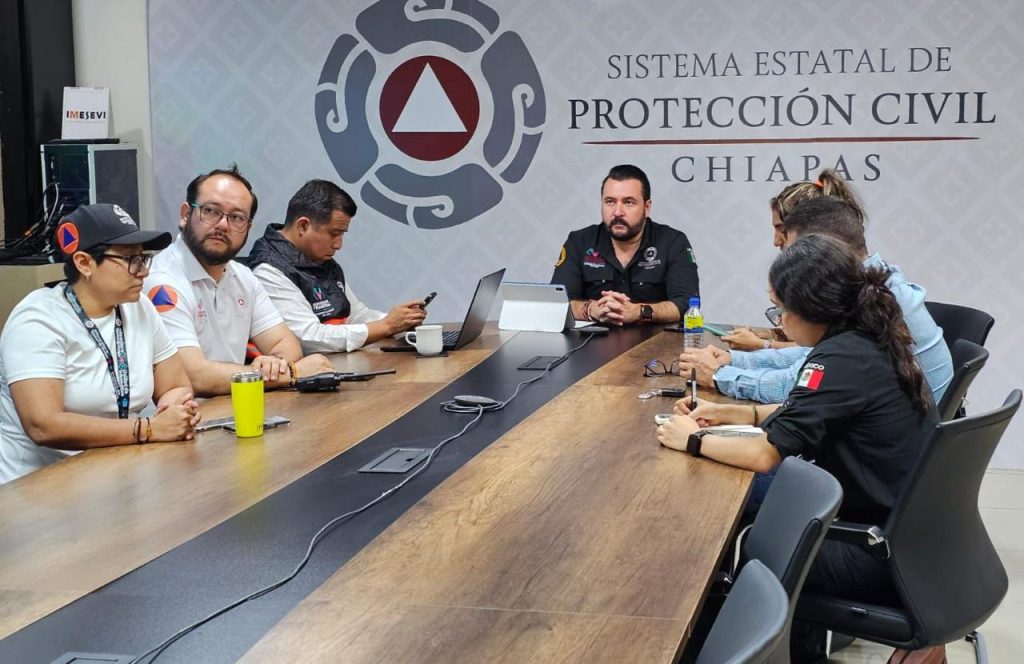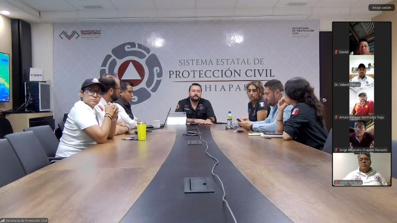 En el marco del Sistema Estatal de Protección Civil, la Secretaría de Protección Civil del Gobierno de Chiapas realizó una reunión informativa de carácter urgente con Secretarías de Protección Civil de diversos municipios para compartir el pronóstico de lluvias intensas que se tienen a partir de hoy y durante el fin de semana, derivado de diversos fenómenos hidrometeorológicos.