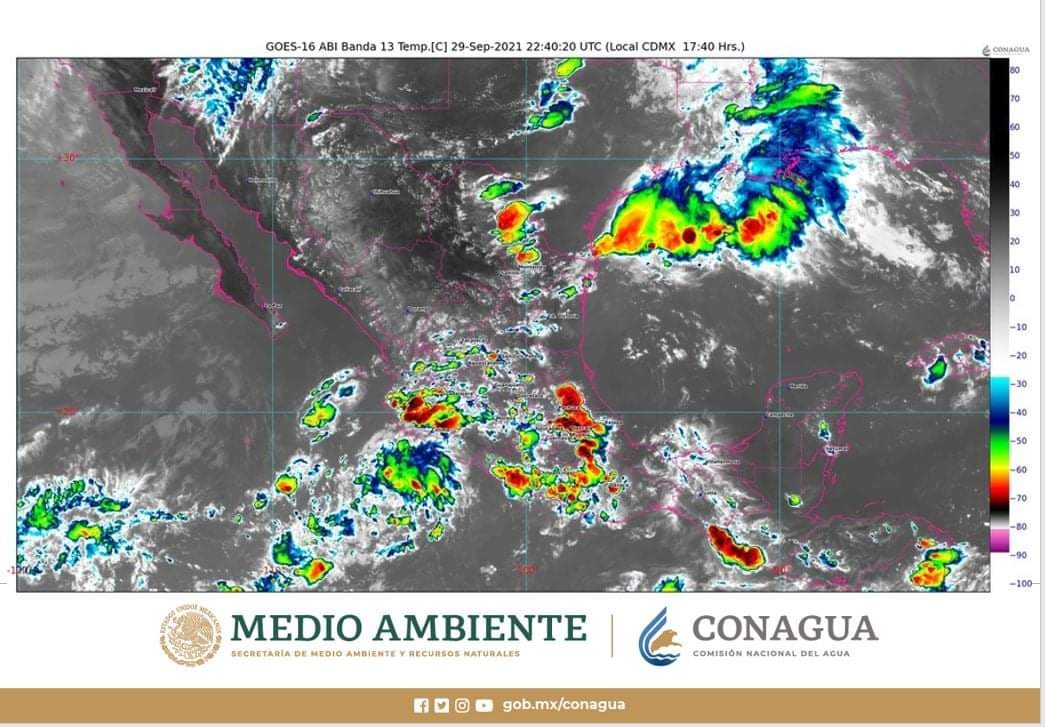 Durante esta noche y la madrugada de mañana, se prevén lluvias muy fuertes (de 50 a 75 milímetros [mm]) en sitios de Coahuila, Estado de México, Guanajuato, Guerrero, Hidalgo, Oaxaca, Puebla, Querétaro, San Luis Potosí, el sur de Tamaulipas, Tlaxcala y Veracruz; fuertes (de 25 a 50 mm) en áreas de Chiapas, Ciudad de México, Jalisco, Michoacán, Morelos y Nuevo León, además de chubascos (de 5 a 25 mm) en zonas de Aguascalientes, Colima, Sonora, Tabasco y Zacatecas. Con las lluvias, se podrían presentar descargas eléctricas, rachas de viento en zonas de tormenta y granizadas.