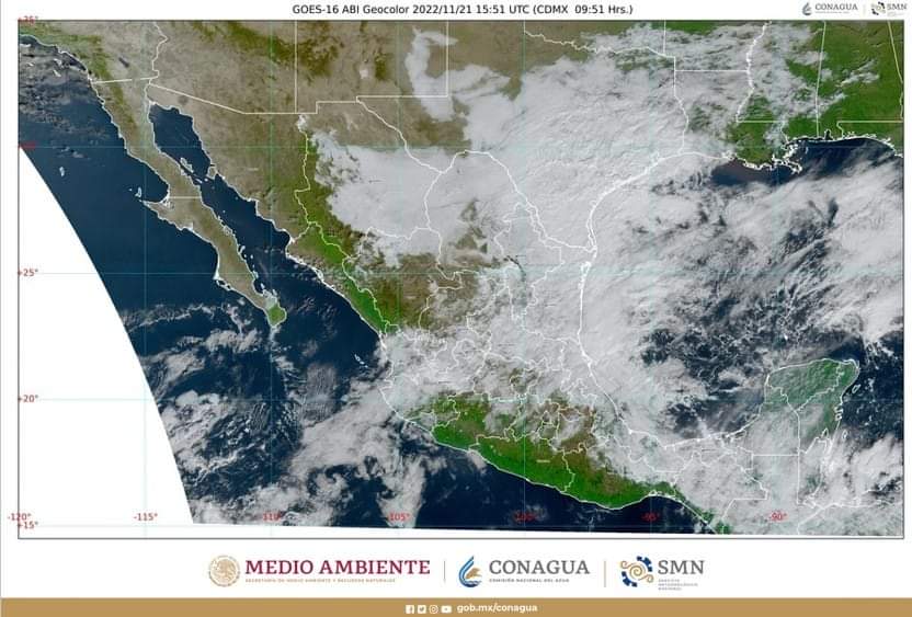 Hoy, el sistema frontal número 10 en el oriente del Golfo de México, su masa de aire frío asociada y canales de baja presión sobre el sureste y el interior del país ocasionarán lluvias intensas (de 75 a 150 milímetros [mm]) en Chiapas, Tabasco, el oriente de Oaxaca y el sur de Veracruz; muy fuertes (de 50 a 75 mm) en Campeche; fuertes (de 25 a 50 mm) en Quintana Roo, Tamaulipas y Yucatán; chubascos (de 5 a 25 mm) en Aguascalientes, Ciudad de México, Estado de México, Guanajuato, Guerrero, Hidalgo, Jalisco, Michoacán, Morelos, Nuevo León, Puebla, Querétaro, San Luis Potosí y Zacatecas, y lluvias aisladas (de 0.1 a 5 mm) en Coahuila, Colima, Durango, Nayarit y Tlaxcala.