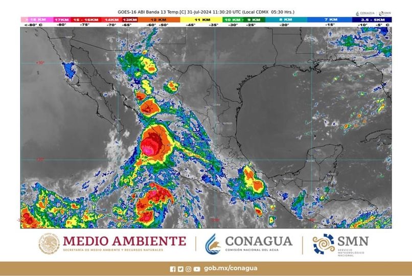 Se pronostican lluvias intensas en Chihuahua, Colima, Guerrero, Jalisco, Michoacán, Oaxaca, Sinaloa y Sonora
