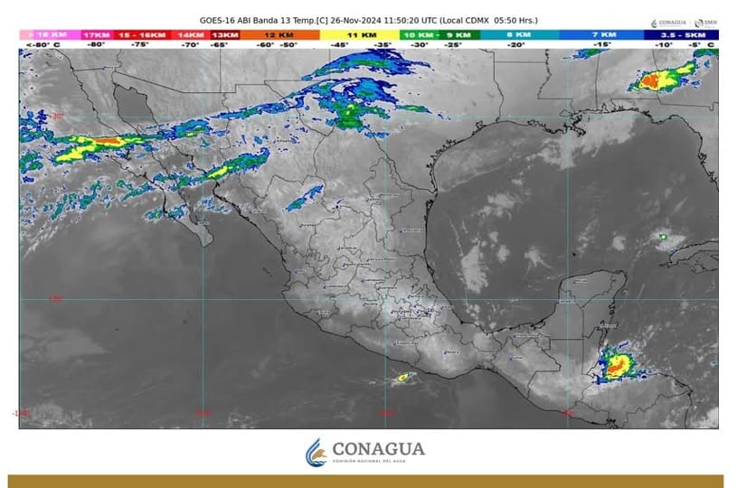 Lo anteriormente mencionado se originará por un canal de baja presión en el sureste mexicano, el ingreso de humedad del océano Pacífico, golfo de México y mar Caribe, el frente frío número 11 sobre el norte y noreste de México, y una amplia circulación anticiclónica en niveles medios de la atmósfera.