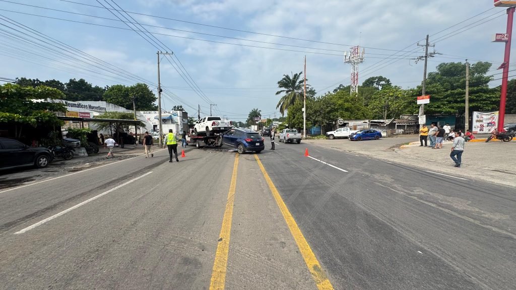 Un accidente vehicular registrado la mañana de este miércoles sobre la carretera Tapachula-Puerto Madero, a la altura de la entrada al ejido Llano La Lima, dejó únicamente daños materiales y generó movilización de cuerpos de emergencia.
