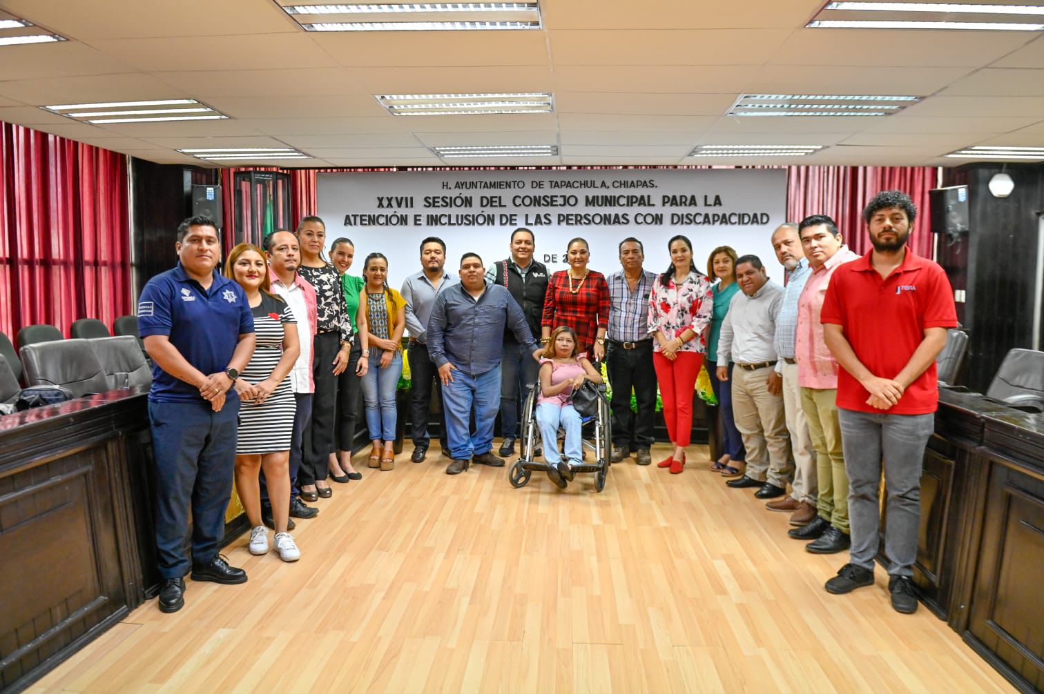 Tapachula, Chiapas.- El Ayuntamiento de Tapachula y el Sistema DIF Municipal, realizaron la XXVII Sesión del Consejo Municipal para la Atención e Inclusión de las Personas con Discapacidad en la que se acordó dar seguimiento a los programas y servicios en beneficio de este sector de la sociedad.