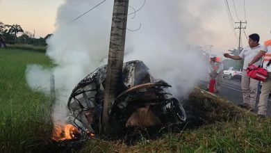 Muere una persona calcinada tras chocar con un poste en el tramo carretero Tuxtla Chico – Tapachula.