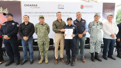 El gobernador Rutilio Escandón Cadenas entregó 14 patrullas y equipamiento a la Policía Municipal de Tuxtla Gutiérrez, como parte del…