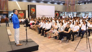 Rutilio Escandón entrega pago de prestaciones y medallas por antigüedad a personal del Cobach