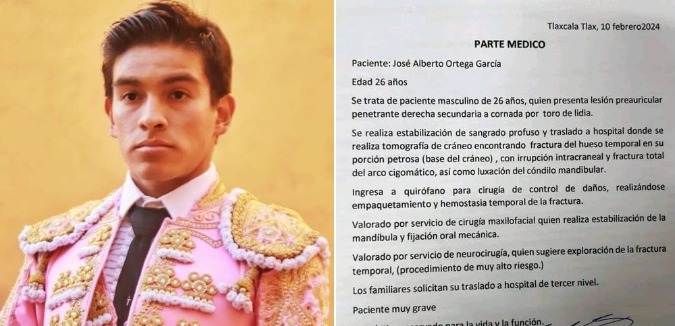 El equipo médico de la plaza actuó para estabilizar al torero, originario de Apizaco, Tlaxcala.