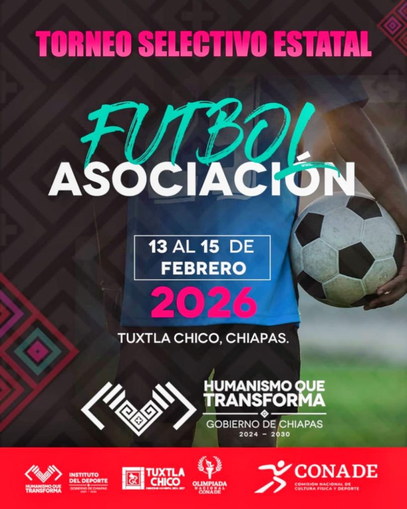 El deporte se vive con humanismo y con pasión al fútbol, este año, Tuxtla Chico es sede de la “Etapa Estatal de la Disciplina de Futbol Asociación, Olimpiada Nacional CONADE 2026” del 13 al 15 de febrero.