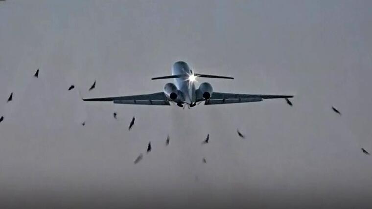 Las imágenes muestran a varias aves chocando poco después del despegue. Algunas provocaron que del motor izquierdo salieran chispas en el momento en que las llantas de aterrizaje se recogían.