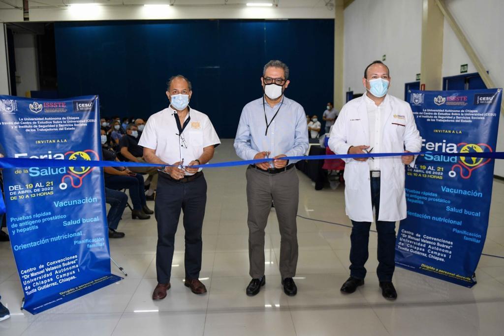 Asimismo, el subdelegado Médico del ISSSTE, Carlos Alberto Domínguez Maldonado, acompañado del coordinador General del CESU, Oel García Estrada, refirió que esta es una oportunidad de acercar algunos de los muchos servicios que esta institución presta a sus derechohabientes, por lo que invito a la comunidad universitaria a acudir a esta Feria de la Salud que se lleva a cabo en el Centro de Convenciones “Dr. Manuel Velasco Suárez “, desde este lunes y hasta el próximo jueves 21 de abril.
