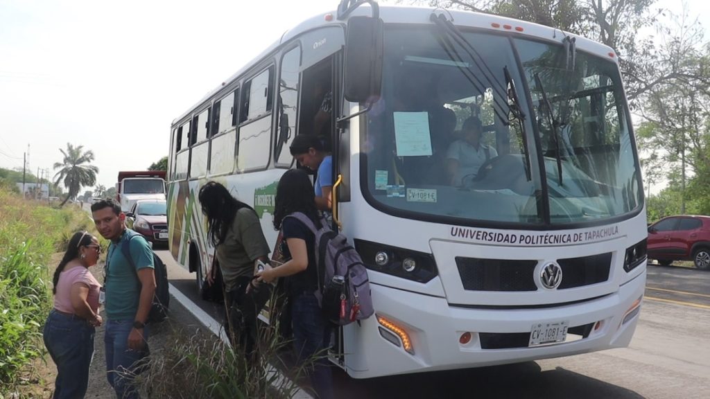 Universidad Politécnica de Tapachula brinda autobuses para trasladar a alumnos y docentes tras bloqueo en tramo Puerto Madero