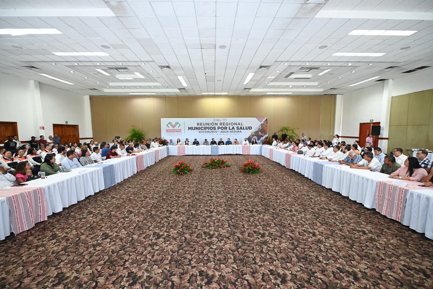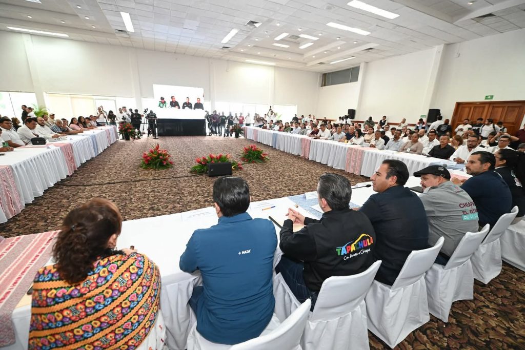 Con el firme propósito de impulsar acciones interinstitucionales que fortalezcan la salud, la prevención de enfermedades y el cuidado del medio ambiente, el alcalde Yamil Melgar, participó en los trabajos de la Reunión Regional de Municipios por la Salud Soconusco- Agua Segura, encabezada por el gobernador de Chiapas, Eduardo Ramírez en nuestro municipio.